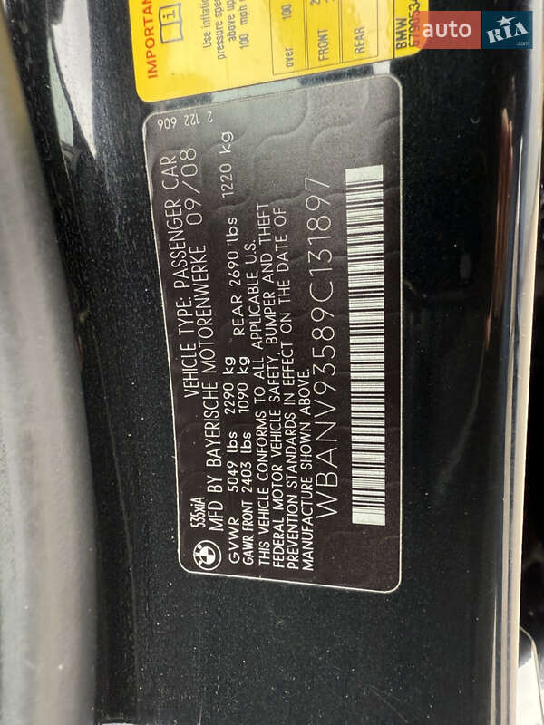 BMW 535ix Повний привід Двигун N54b30 TwinTurbo; 306 к.с. АКПП ZF6HP28X
