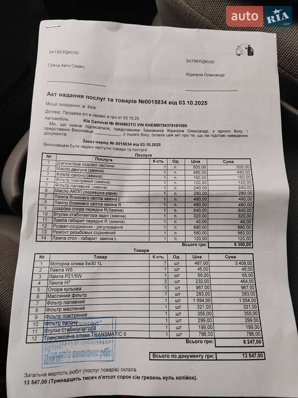 Пропонується Вашій увазі один із лідерів свого сегменту офіційний мінівен KIA Carnival другого покоління з надійнішим мерседесівським двигуном та автоматичною трансмісією. Авто в гарному стані та не потребує вкладень . Авто має багату комплектацію Багатозонний клімат контроль Круїз контроль Три ряда сидінь Підігрів сидінь Титанові диски Два комплекта гуми..тощо..Форсунки всі обслужені .... Авто тільки після великого ТО с заміною мастил і всіх фільтрів..Авто вже на зимовій гумі...Торг звісно присутній...
