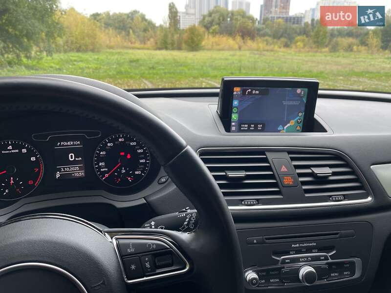 Audi Q3 Premium Plus 2015. Quattro. Безключовий доступ. Запуск з кнопки. Передній/задній парктронік. Задня камера. Панорама. Датчик світла/дощу. Електрорегулювання/підігрів передніх сидінь. Двозонний клімат. Додатково встановлено безпровідний CarPlay/Android Auto, StarLine S66 (перепрошитий на Treeum), дистанційний запуск двигуна з ключа або телефона. Комлект зимової і літньої гуми.