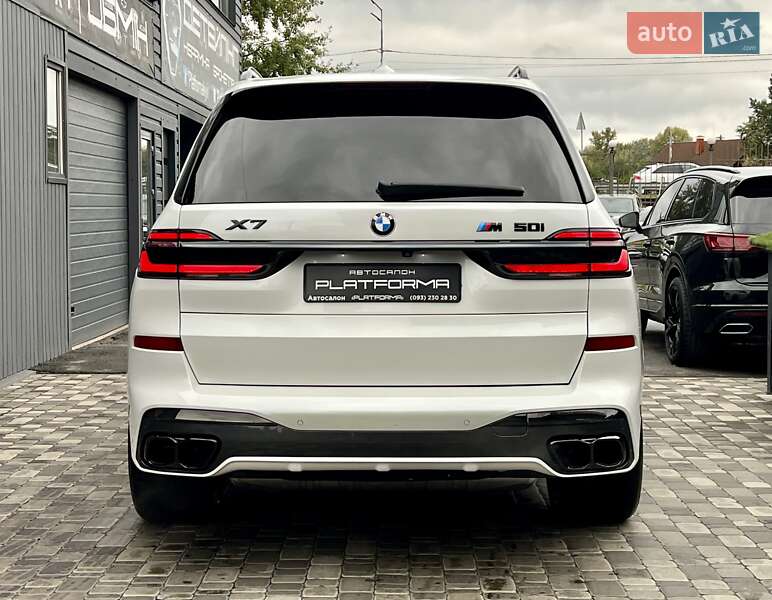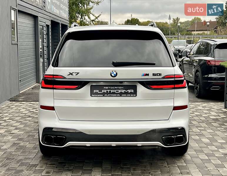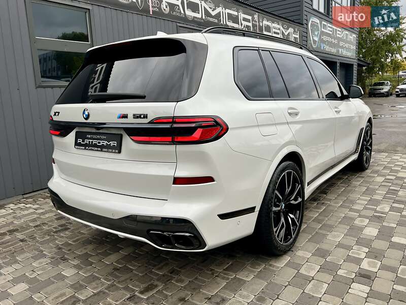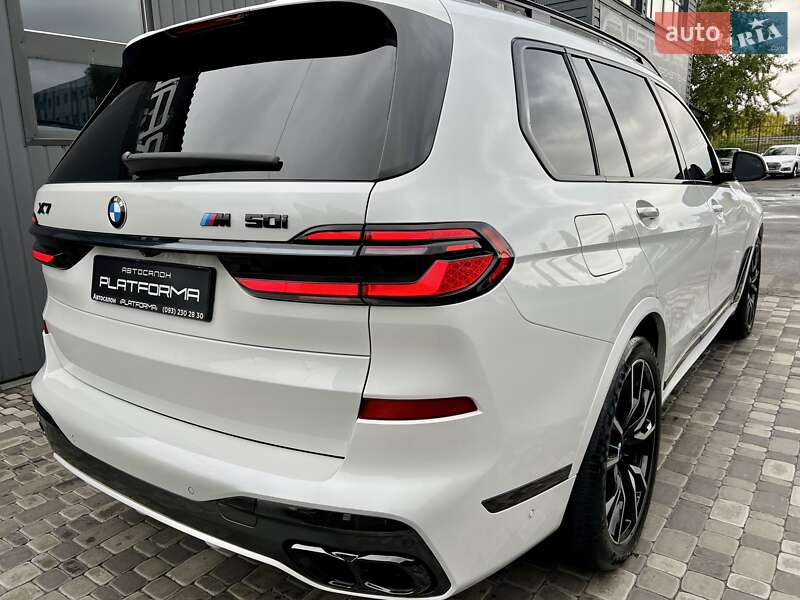 BMW X7 M50i 4.4L TwinPower Turbo – 530 к.с. / 750 Нм Перша реєстрація – 06.2020 Пробіг – 68 000 км Розгін до 100 км/год – 4.7 с Максимальна швидкість – 250 км/год Повний привід Комплектація: M SPORT PACKAGE PRO / M HERITAGE • Спортивна вихлопна система M Performance • Спортивна АКПП та диференціал M • Інтегральне активне кермо Executive Drive • Спортивне гальмо M • 22” легкосплавні диски з шинами RunFlat • Shadow Line з дзеркальним блиском • M ремені безпеки • Логотипи BMW M Heritage • Пакет Comfort / Waermekomfort • Сидіння з вентиляцією, пам’яттю та масажем • Скляна обробка Crafted Clarity • Стеля Alcantara антрацит • Підсклянники з підігрівом / охолодженням • Ambient Air пакет (ароматизація салону) • Підсвітка салону з функцією супроводу • Автодоводчики дверей • Комфортний доступ без ключа • Harman/Kardon аудіосистема • BMW Live Cockpit Professional • Управління жестами BMW Gesture Control • Apple CarPlay • Безпровідна зарядка • Система паркування з камерою • Автоматичне перемикання дальнього світла • Driving Assistant / Active Protection Ідеальний технічний та візуальний стан.